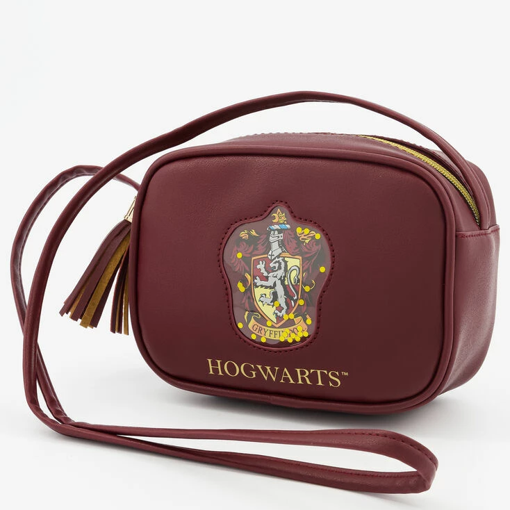 This stylish Harry Potter™ crossbody bag will add a cute touch of magic to any outfit! The faux leather burgundy bag has Gryffindor’s crest on the front filled with golden confetti. The golden zip is finished with a burgundy tassel.