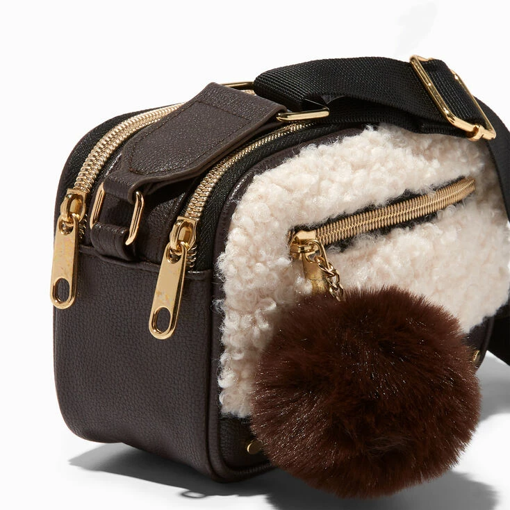 So fashionable with all of your fall and winter outfits (like your fave sweater), this camera-style crossbody bag features lots of details you’ll love! It has a double-zip top like a camera bag, and there’s also a zippered pocket on the front. The soft, sherpa-like body is accented with brown faux-leather panels, plus gold-tone hardware and studs, an adjustable strap, and a fun pom pom decoration. Inside, there’s just enough room for the essentials, like your keys, cash, and cards.
